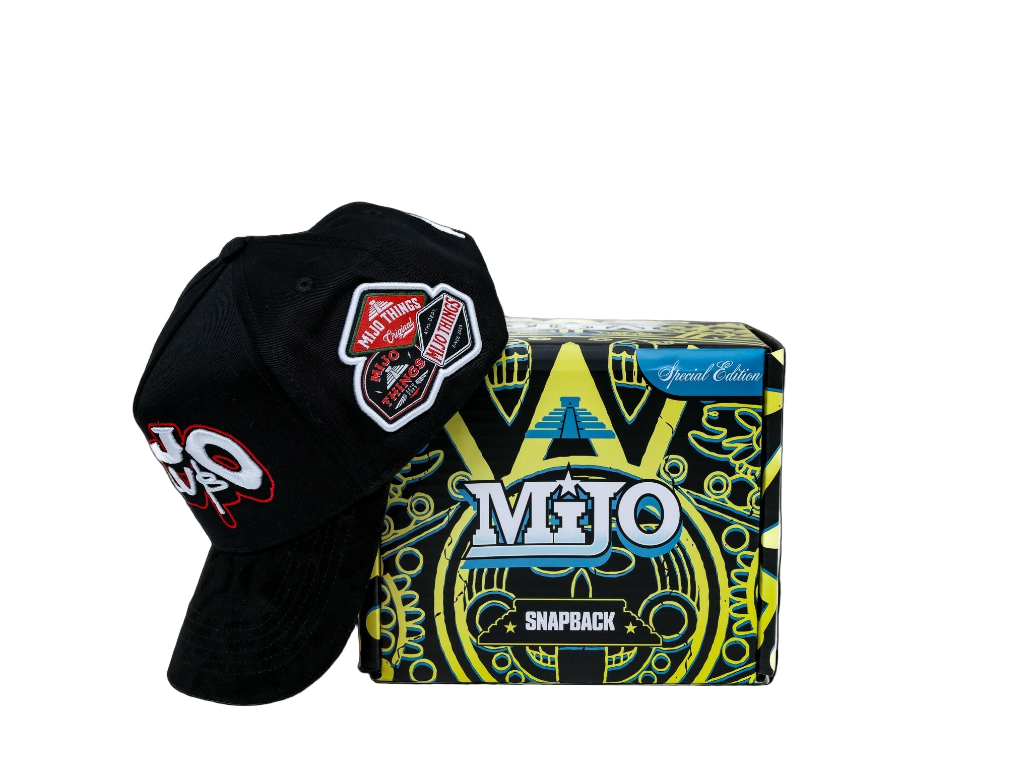 • A hat built for the ones who carry the culture with them. The Mijo Club – Sangre Azteca hat mixes bold street energy with deep cultural roots. The front features a heavy 3D puff “MIJO CLUB” graphic outlined in red for maximum impact, paired with dual lightning embroidery on the brim and the signature Mijo red under-visor. What makes this piece truly special is the inside: a full custom print of the Aztec Sun Dial, honoring history, heritage, and the warrior mindset behind the Mijo story. Side patches highlight our classic Mijo Things heritage badge, while the back features FOR THE CULTURE embroidery — because this movement is bigger than fashion. Details